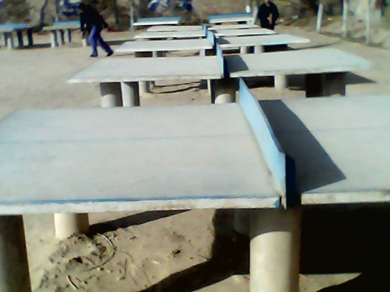 操场的西北角落,一排乒乓球台挨着树沟排列着,每到上体育课时,这里便会有许多同学在互相比拼、游戏,打比赛也通常在这儿。这里没有同学玩耍时,夕阳的余晖落在台上,坐在这儿乘凉、聊天也是个不错的选择,安静之中又透着一丝欢乐。