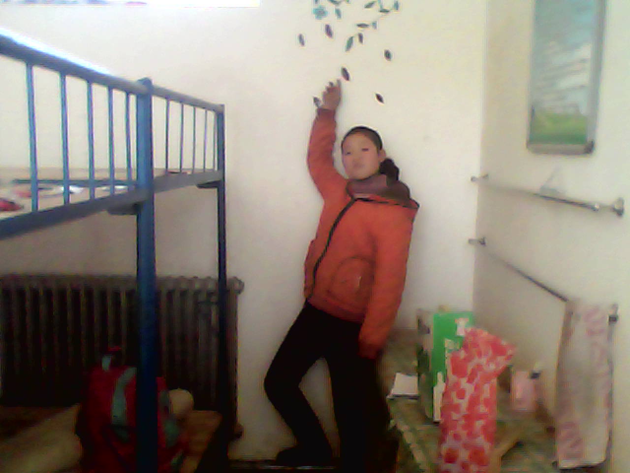 每逢开学,我们都要对宿舍、教室大大翻新一遍,这时候便需要有"洋娃娃"称号的俞欣蕊为我们设计图案了。大家可以瞧瞧我们宿舍的这幅图,这便是她的创作,刚开始的时候大家都还以为时花钱买来的,可见她的设计真的很优秀。