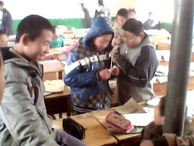 教室里,同学们围着火炉,打打闹闹、嘻嘻笑笑。截然不同的正是外面万籁俱寂。