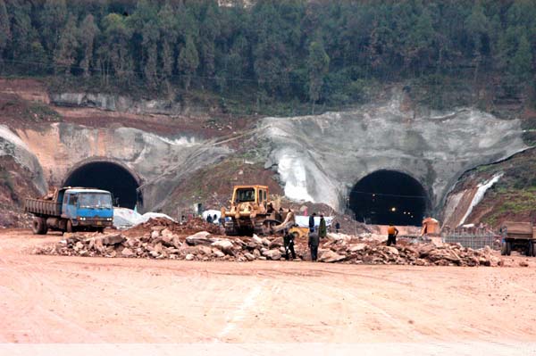 通江是中国的红军之乡,是银耳之乡,也是溶洞之乡,按说这些对通江的发展有很大的推动作用,然而并非如此,通江的发展在全国来说,还是非常的缓慢,在全国改革开放的浪潮中,通江人民也在奋发图强,用自己的双手建设自己的富民路,图为正在建设中的木兰山隧道。