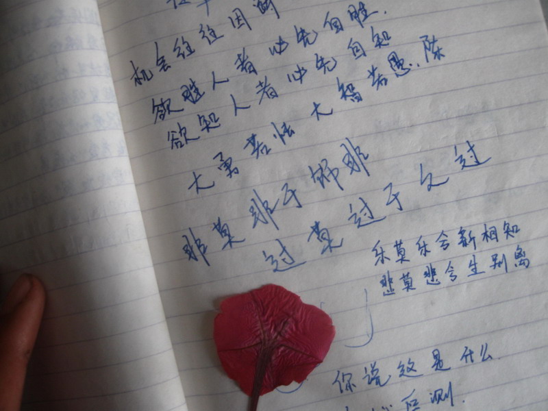 方正的中国字,笔下的墨迹。我一直很羡慕姐姐的字迹,她的字很好看,隽秀又轻灵。那一本本密密麻麻的笔记,一页页溢满墨香的纸张记载着姐姐那时的期望,美好的憧憬。姐姐的包里总是装着一支笔,是工作所需,后来那几支笔就留在了我的手中,可惜那时我的字不好,歪歪扭扭的,笔用了几年,也就不知遗失到了哪里。在姐姐用过的书箱子里,放着几封信,那信姐姐让我看过,都是姐姐的朋友写给她的,稍有些泛黄的信封上写着那时姐姐所在大学的名称,信是姐姐在高中的朋友寄来的,真是一份美好的友情,姐姐在收到来信的时候肯定很高兴吧!