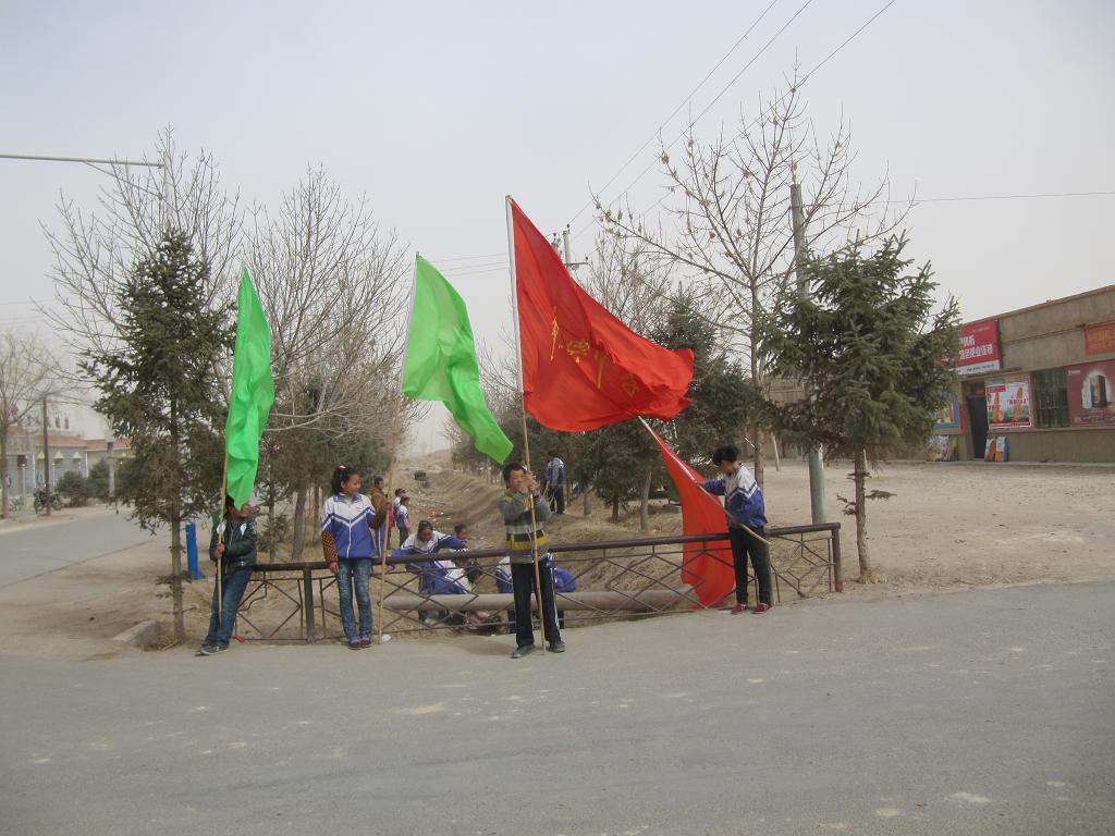 彩旗在风中飘荡,同学们在路边忙碌。公路两边都是我们清理垃圾的"大军",我们每个人都以雷锋为榜样,用自己实际的行动,践行雷锋精神。同时也向过往的行人昭示着:保护环境,人人有责。