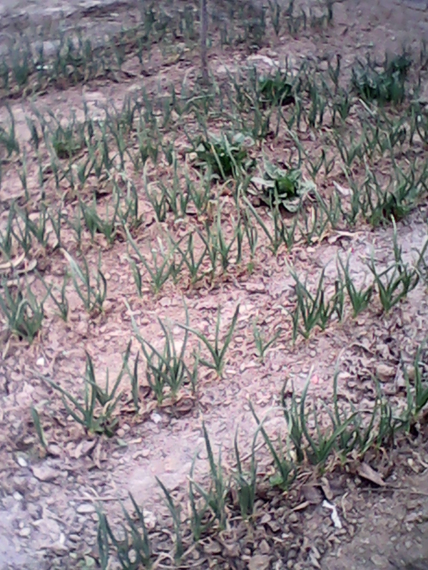 家里后院大,又没有放什么,所以奶奶就和我在去年秋天的时候,开垦了一片土地,冬天快来时,奶奶在它上面种了大蒜,现如今已是春天了,看,它长的多健壮,土地多肥沃。