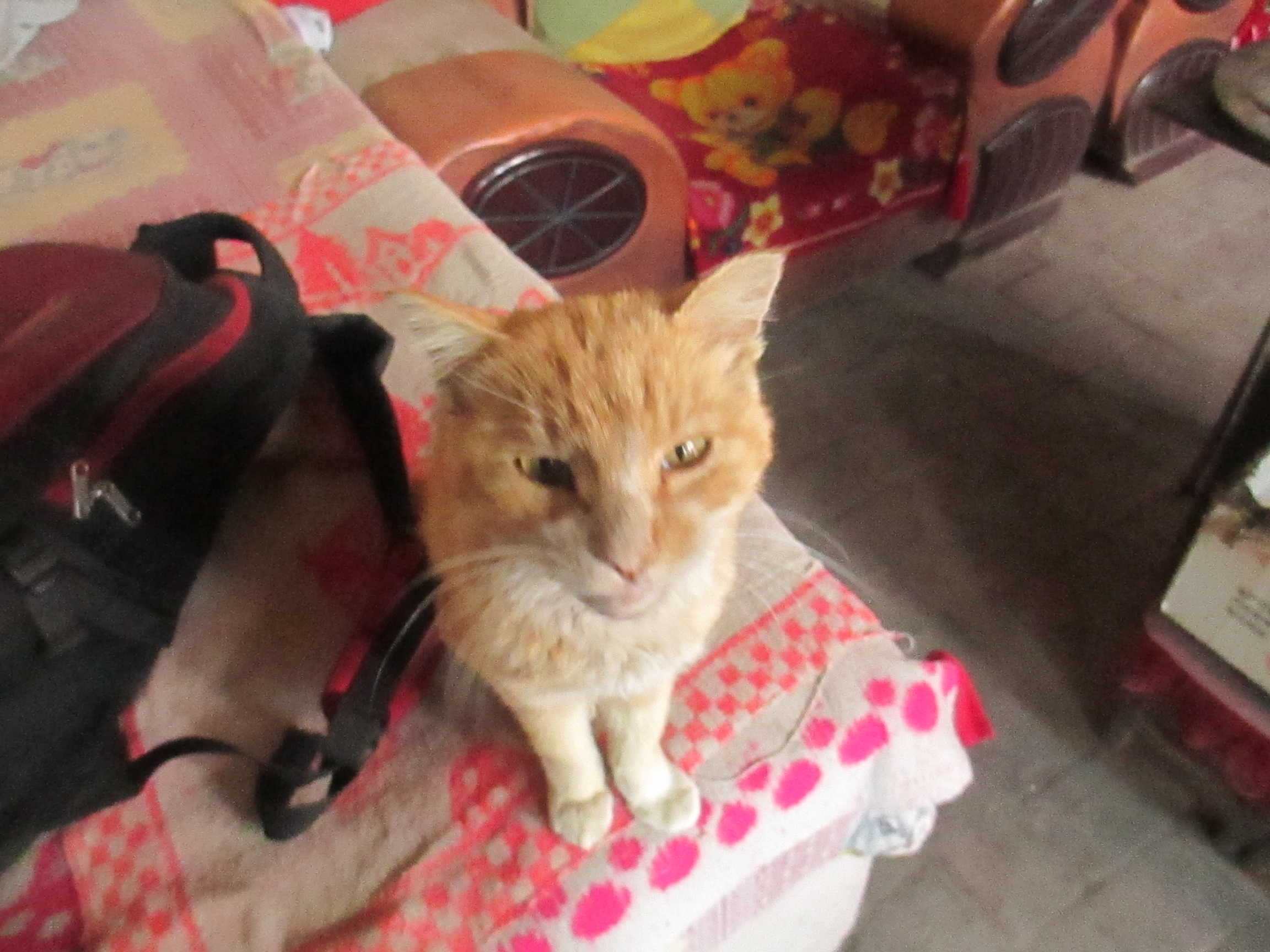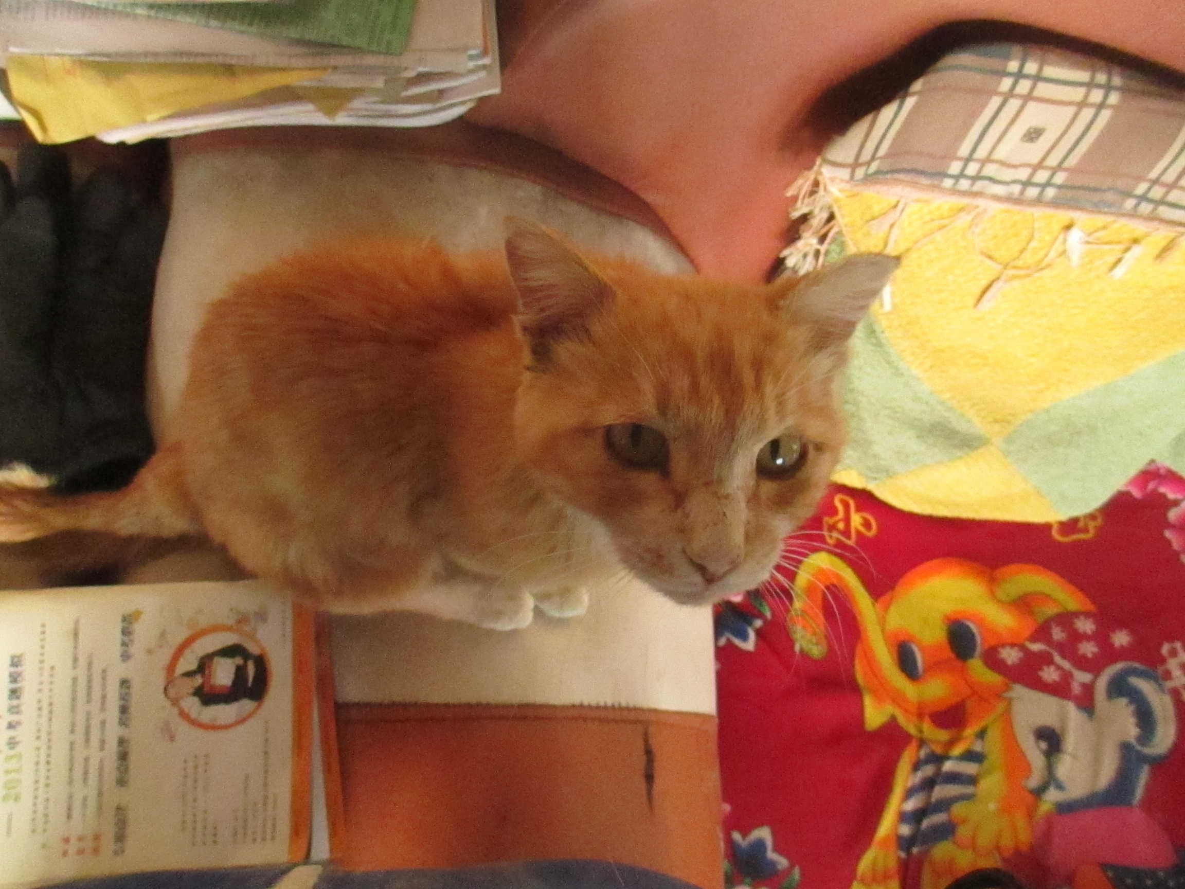 等那只老猫生下小宝宝后,我选了一只黄白相间的花猫,这只小猫长着一对绿色的大眼睛、长长的胡须、穿着一身金黄衣服、脚上套着纯白战靴,显出一副淘气样,特别逗人喜爱!在强烈的阳光下,它的瞳孔可以缩的很小,像一根细线一样;在夜色昏暗之中,它的瞳孔又可以开放的像满月那么圆;在一般强度的光线下,它的瞳孔又会形成枣核的样子。