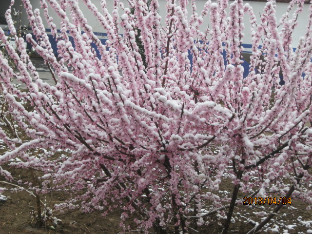 来到果园,果树上那星星点点的绿色,还看上去有点生机,可以这么说,它简直是西北春姑娘唯一的装饰品。