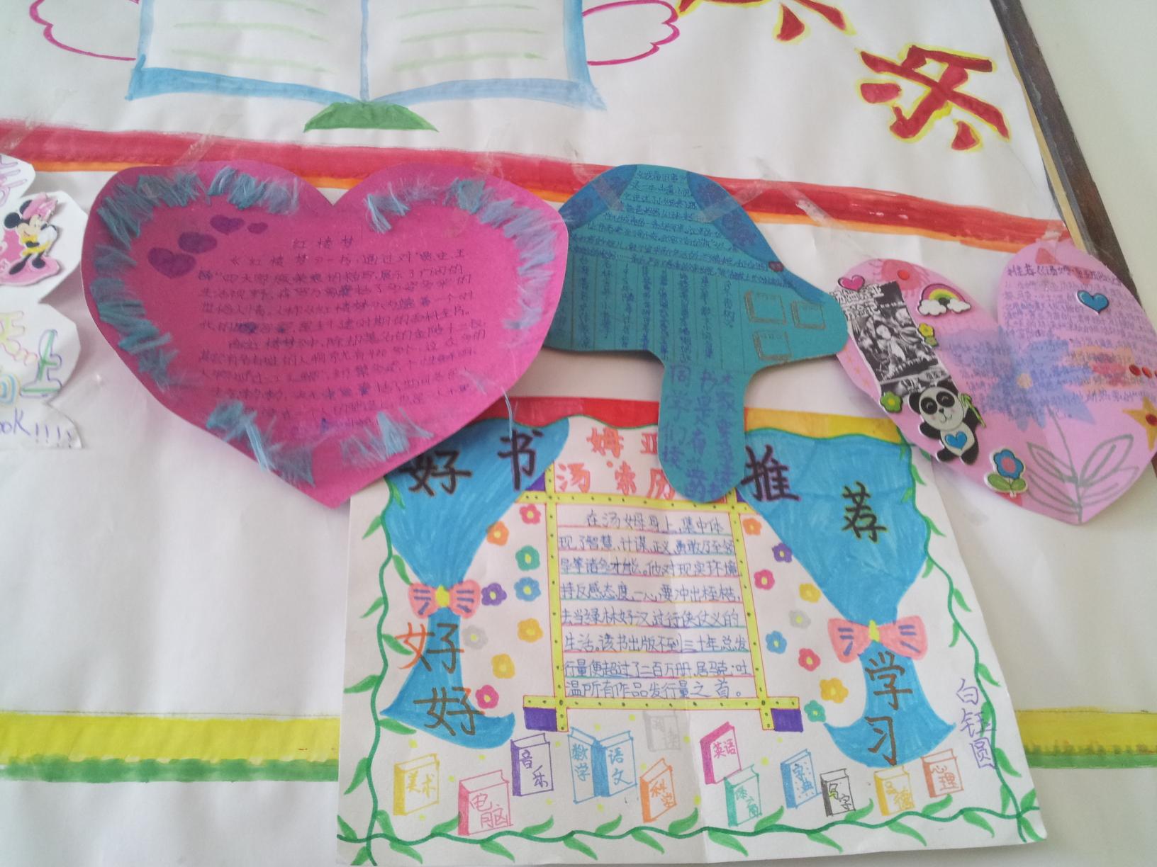 "读书乐"是由班里最善长画画的同学设计的,办得非常漂亮。就在刚出台不久,我们班就开展了"读书交流会",老师还评出了一、二、三等奖的获得者呢!之后老师把优秀的作品贴到了"读书乐"的展示台上。你知道吗?上面有许多作品。有读书卡,还有读书心得。