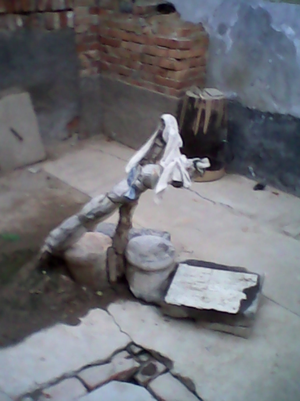 这是一口人工造成的拉水井,看起来那么细,但是它在家时也算得上是农具之一了,由于家里打的是窑,没有自来水供应,窑里储存着雨水,水并不是很多,但是家人生怕天旱,窑里水干。所以浇菜、洗衣等都用的拉水井里的的水,它也为家里承担了一定的责任。