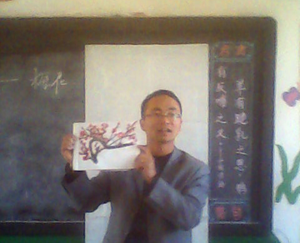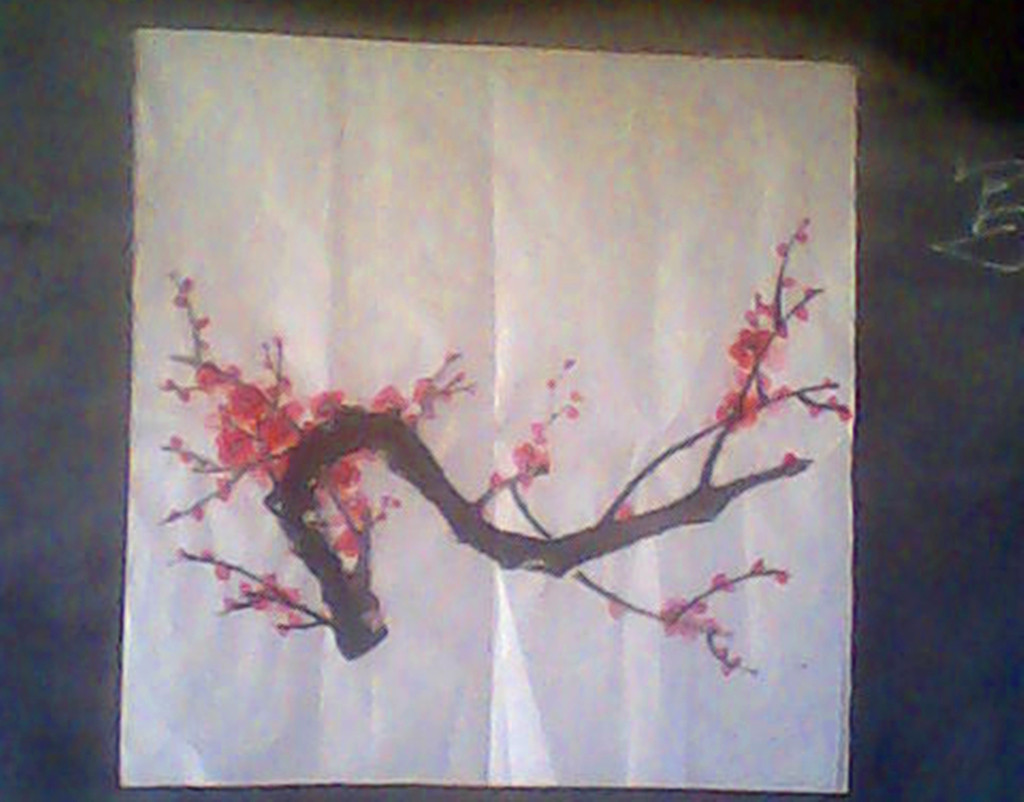 老师讲了写意花鸟画梅花的画法,然后边讲边现场示范如何画梅花。不一会儿,一幅漂亮的梅花图就画好了,我们一个个啧啧称奇。