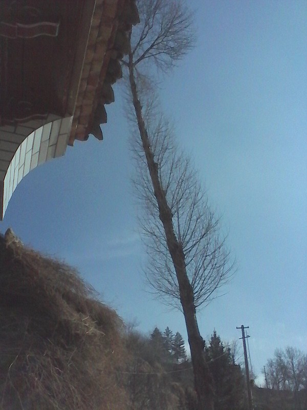 这是舅舅家院内的一角,这棵白杨树竖立在那很多年了,它又高又大,它就像是为我指引回家道路的航标,看到了它,就像看到了家,感觉到了家的温馨家得甜美。记得小时候经常和姐姐一起爬上树眺望远处美丽的风景。