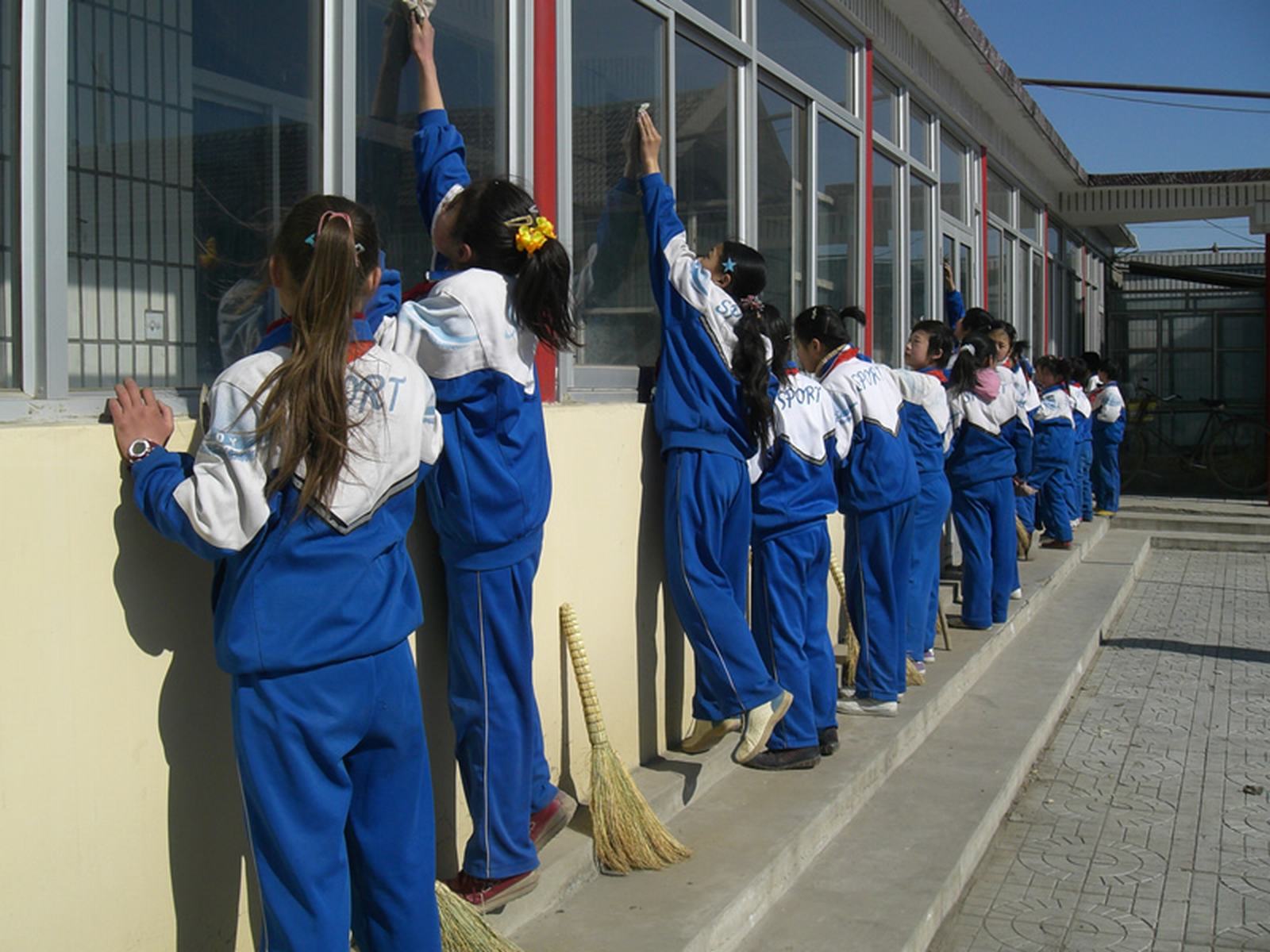 大家干的非常认真,先用干抹布擦去灰尘,然后蘸上水擦洗,最后再用干抹布擦一遍。大家分工合作,很快就把校门擦洗的干干净净。看着我们的劳动成果,大家虽然很累,但心里美滋滋的。
