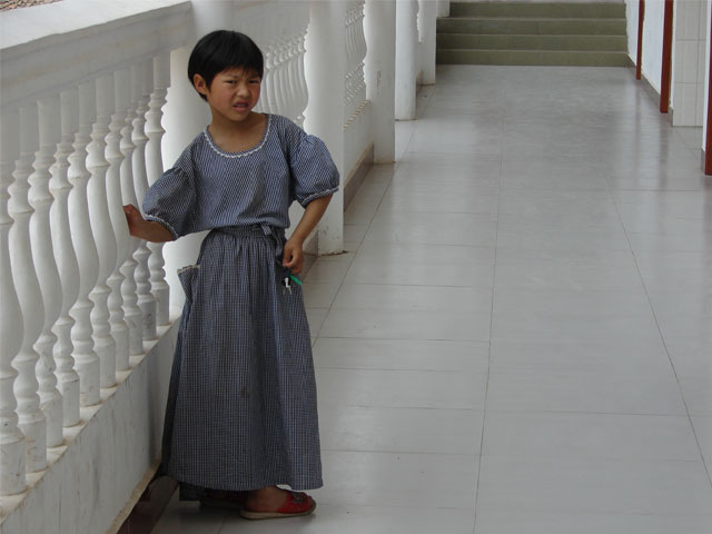 看到这么多的陌生人,这个孩子还是表现出了其他儿童没有的那种孤僻。很难想像她是一个没有父母痛爱的孤儿吧,像这样的孩子在我们的生活中还是很多的。想当年,我们在她们那个年龄时,有父母的爱,也有亲人们无比的呵护。她们也应该得到社会的爱,我们是幸运的,可我们不能忘了我们也有责任和义务去关心她们,去爱护她们的成长,我们要抽出时间去让她们感受到社会对她们的爱。