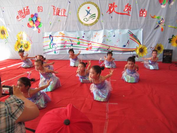 舞蹈表演开始了,小演员们鱼贯而出,瞧,她们个个浓装艳抹,漂亮非凡。顿时,台下的掌声雷动,台上的人便跳得更激情奔放,翩翩起舞,像百花飘零的仙子。台上的演员表演得栩栩如生,台下的观众看得如痴如醉。还有台下的老师录制着孩子们诱人的舞蹈。此时的表演正在高潮,孩子们多么专注啊!