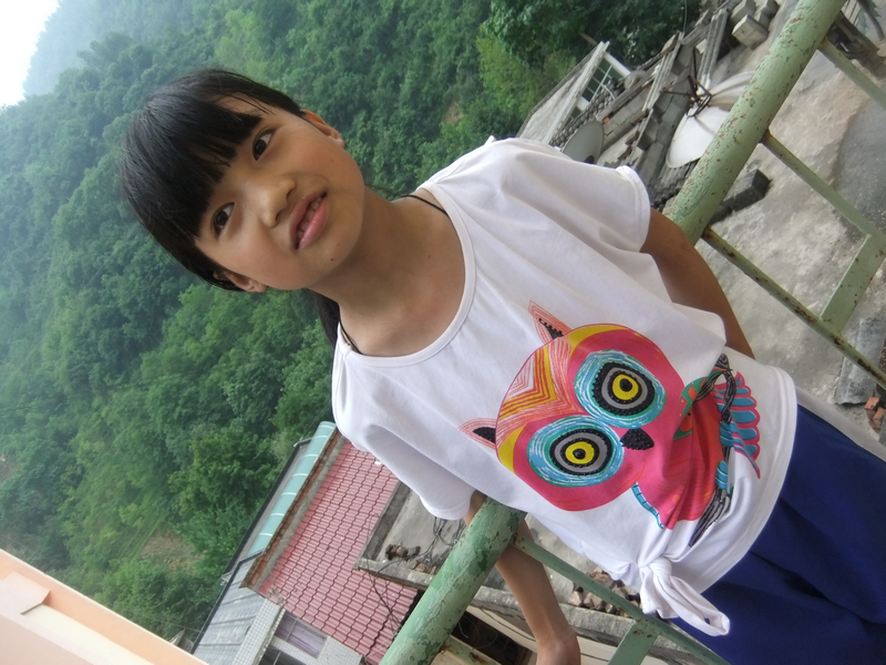 一件白色的T血衫上印着一只猫头鹰的图案,桃红色的短裤和一双粉色的凉鞋是她的最爱。两只大眼睛经常眨个不停,小小的嘴巴经常说的没完没了。