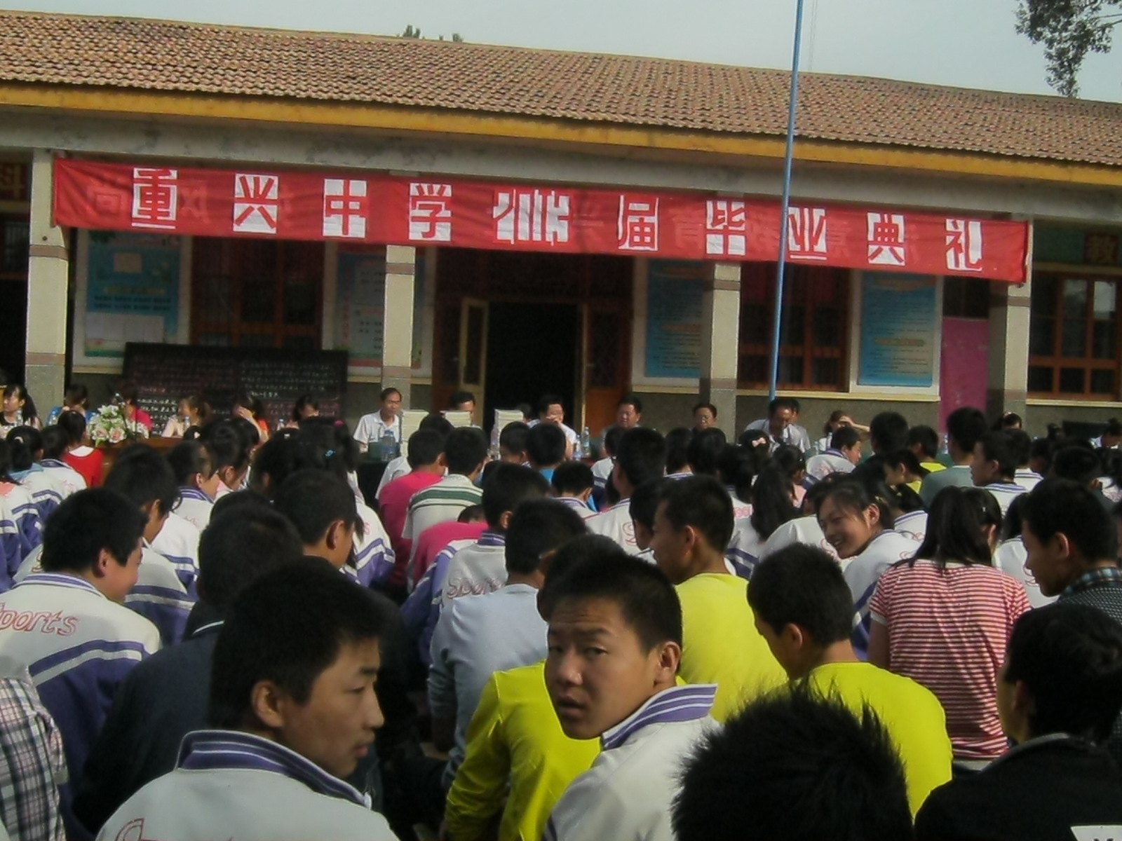 今天是星期五,老师一早就通知我们参加2013届九年级毕业典礼,我们兴奋的带着凳子来到了这壮观的场面。看,毕业典礼马上就要开始了,同学们已经坐好了,正在议论纷纷,期待着毕业典礼的开始。