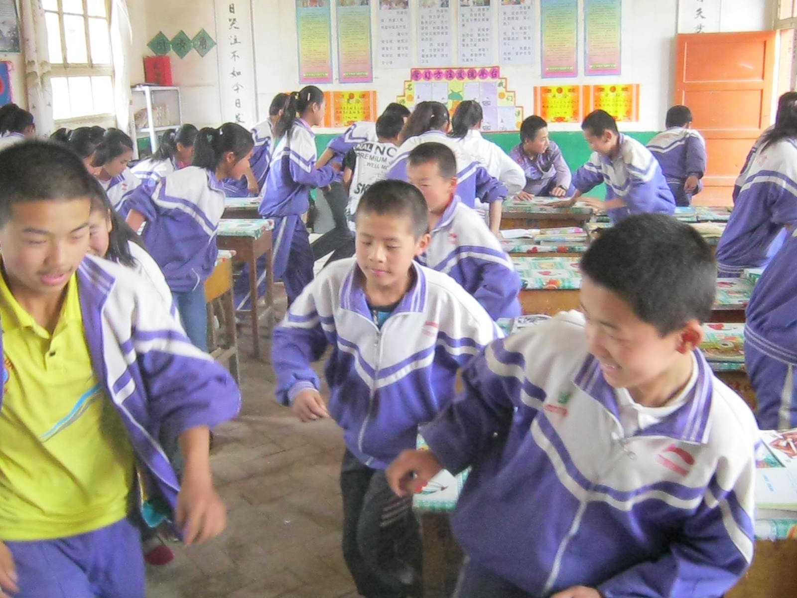 秩序井然的同学们很快地跑出了教室,好像灾难真的来临了,飞一般地冲向操场。同学们的脸上充满笑容,充满着对灾难的警惕性。