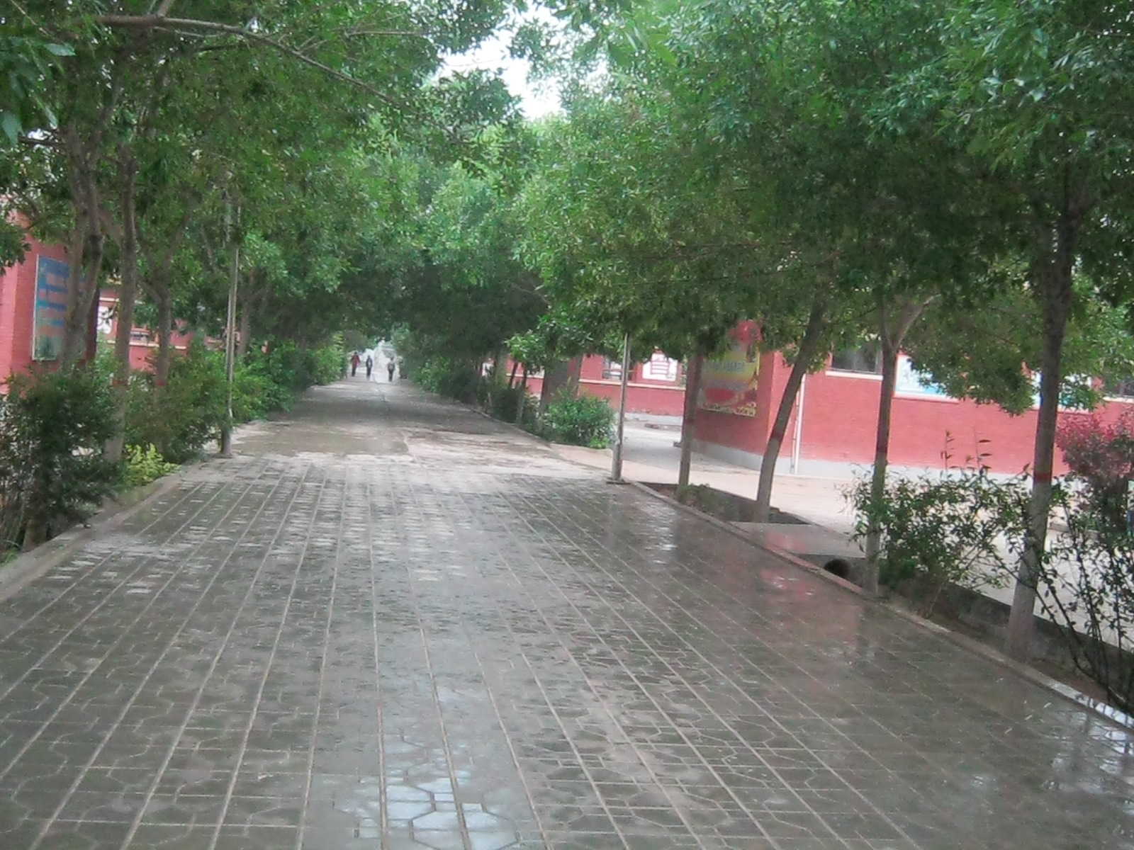 这是我们的校门,高大雄伟在我心中有着不可敷衍的威严。不可破碎的铁栏,鲜艳的旗子,四个石墩,大气磅礴的校风,平整的地面,整齐而充满生命的豪柳等衬托出我校不一样的气质和不衰长存的生命。这就是雨后的学校,令人神往,令人致敬。