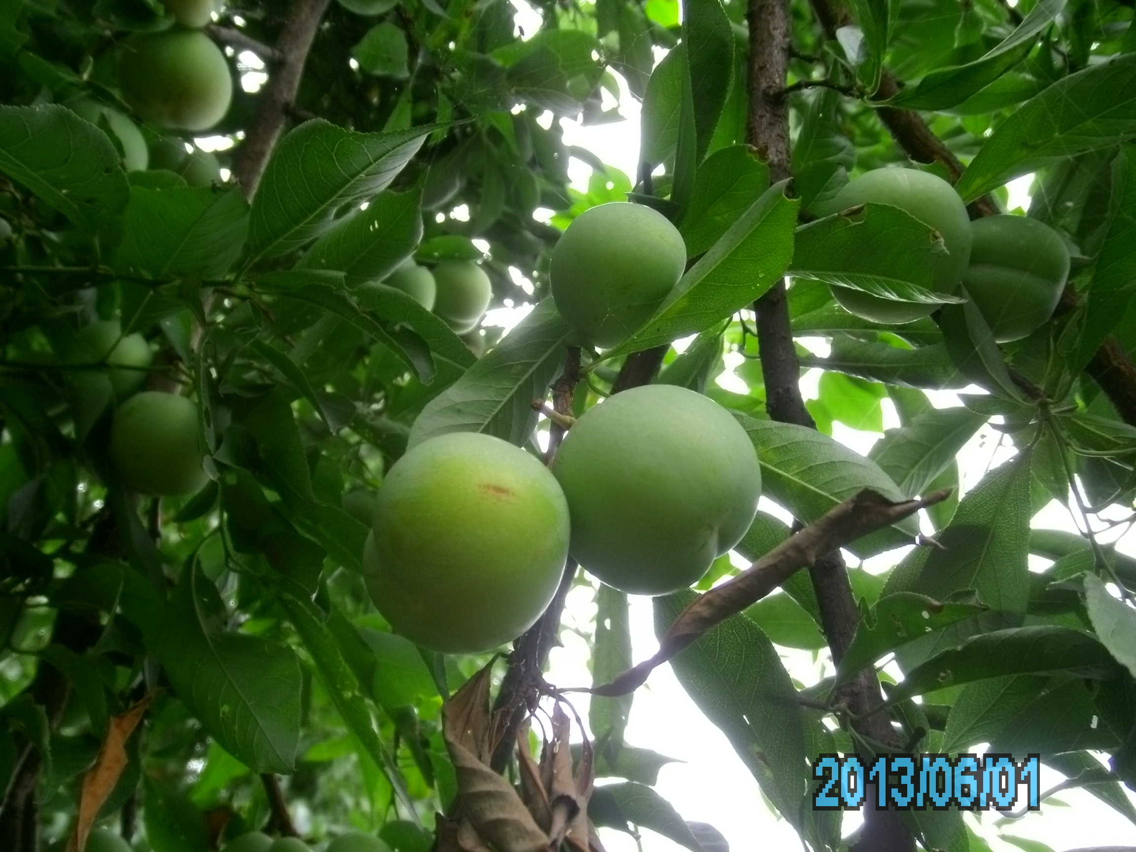 过了几个星期,李花慢慢谢了,取而代之的是一个个青涩可爱的小李子。它们或3或5地抱作一团,相互拥簇着。就像几个兄弟姐妹在一起互相依偎、支持。但是其中也有一些李子被虫子挑中而占为己有。