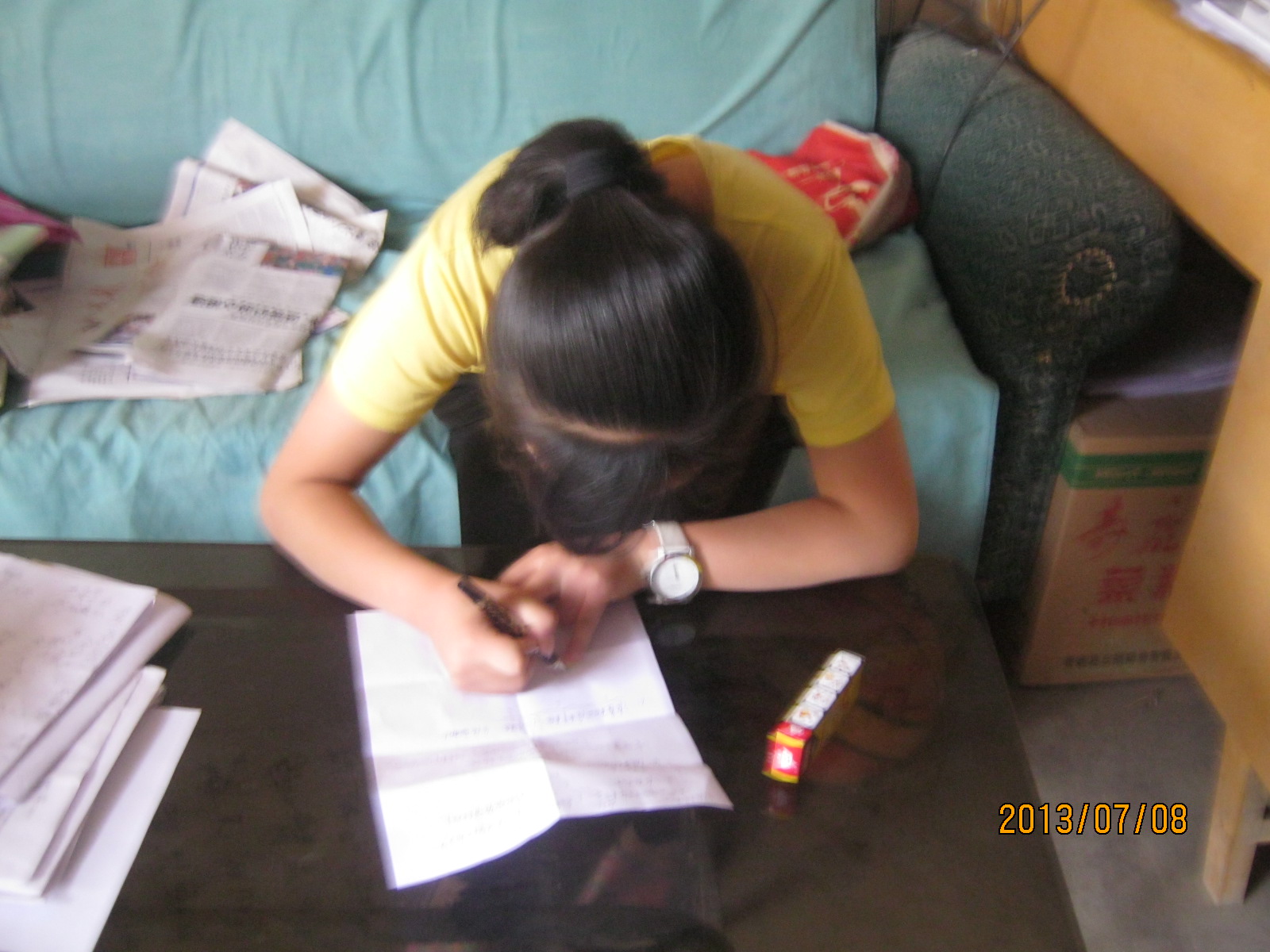今天的作业好多啊。唉,没办法,只好牺牲亲爱的肚子来补作业了。背后突然传来一声"咦?你怎么不去吃东西?"转头一看,原来是班主任。我慌张的答道"我······我······我不饿"。(唉,没办法,真违背良心呐)老师似乎看穿了我的心思,说道"身体是革命的本钱啊······"