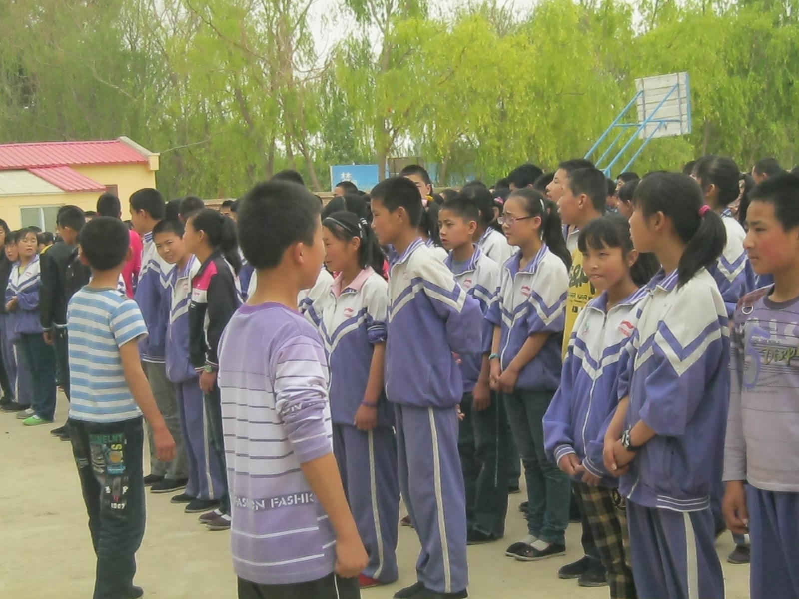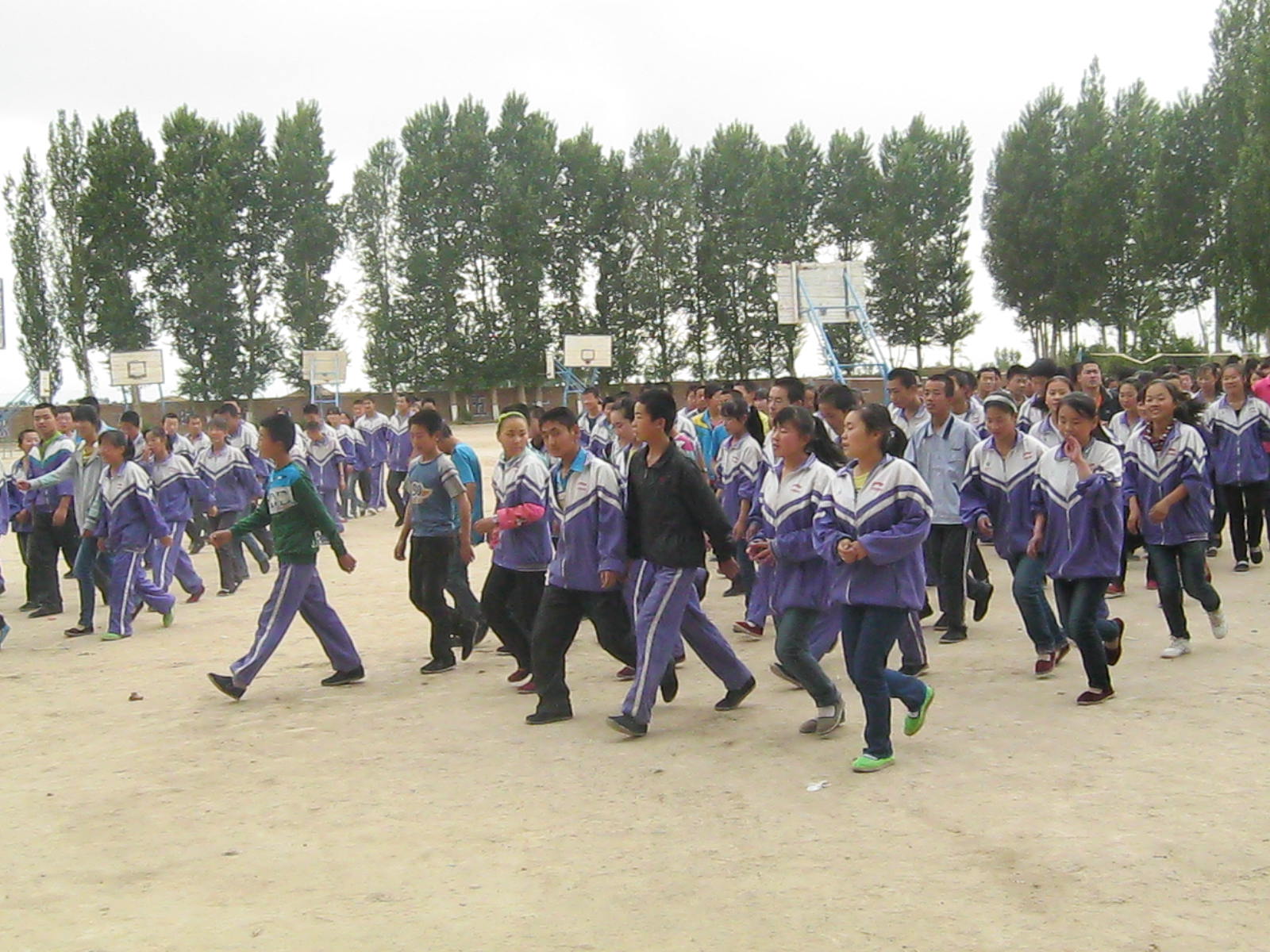看, 同学们站在操场上,队长正在整队。认真的听着校领导讲话。校领导说这次演练举办的很成功,希望我们以后能充分地理解灾难,用正确的方法对待。