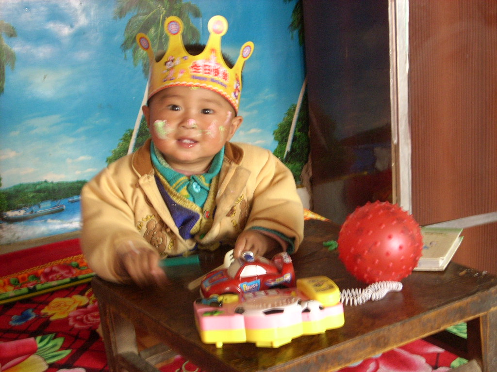 大家都把各自的准备的礼物送给了小家伙,任由他的选择只见他一会儿拿起了这个一会儿又拿起了那个玩的是不亦乐乎,我见他不会玩一个玩具就去帮他谁只他碰都不让我碰,看着他那小气的样我就只好离开了给他一个属于自己的空间去尽情玩耍。