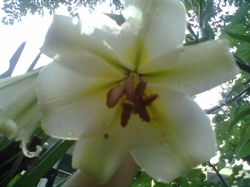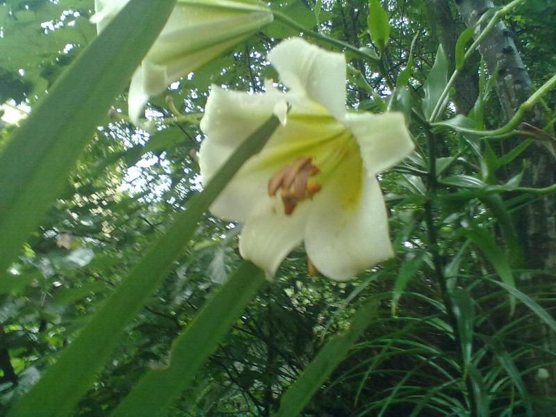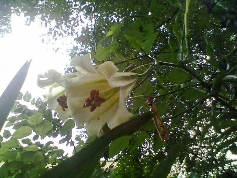 昨天我去爷爷家玩,无意间发现了植株挺立,叶似翠竹的百合花。我蹲下身子,仔细的观察这洁白无暇的"仙子",清新的叶子泛着绿意,洁白的花朵初绽娇嫩,、这是我第一次这么近距离的凝视与欣赏一束百合花。