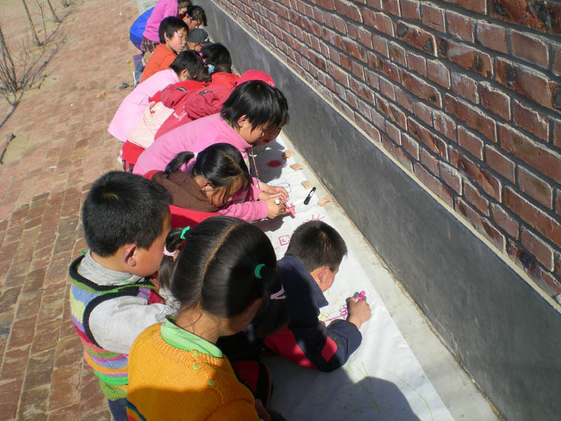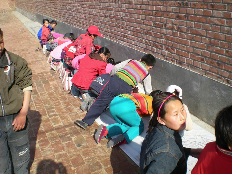 十米的画卷在同学们的共同努力下,很快就完成了,同学们长出一口气,看着自己的精彩作品会心地笑了。这样的活动真好,我们真希望多办几次。