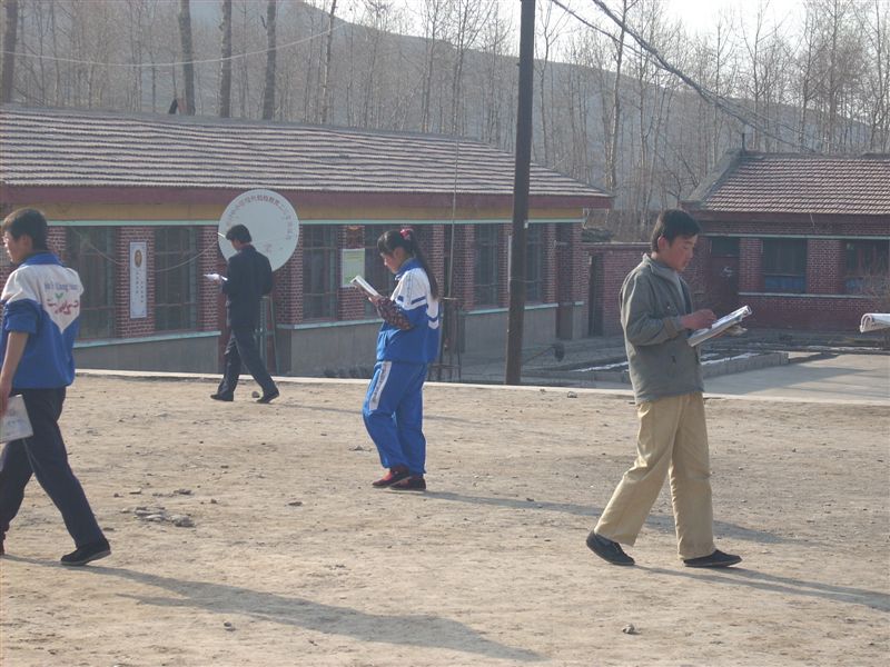 中午,好多同学都不愿花费一点点时间,哪怕是吃饭。下课铃一响,部分同学箭一般冲出教师飞向灶房。争先恐后的把几口饭吃了。又得回教室。部分同学索性蹲在教室里嚼几口自带的干粮,过了半个小时,同学们早已回到自己的座位上背着、写着。