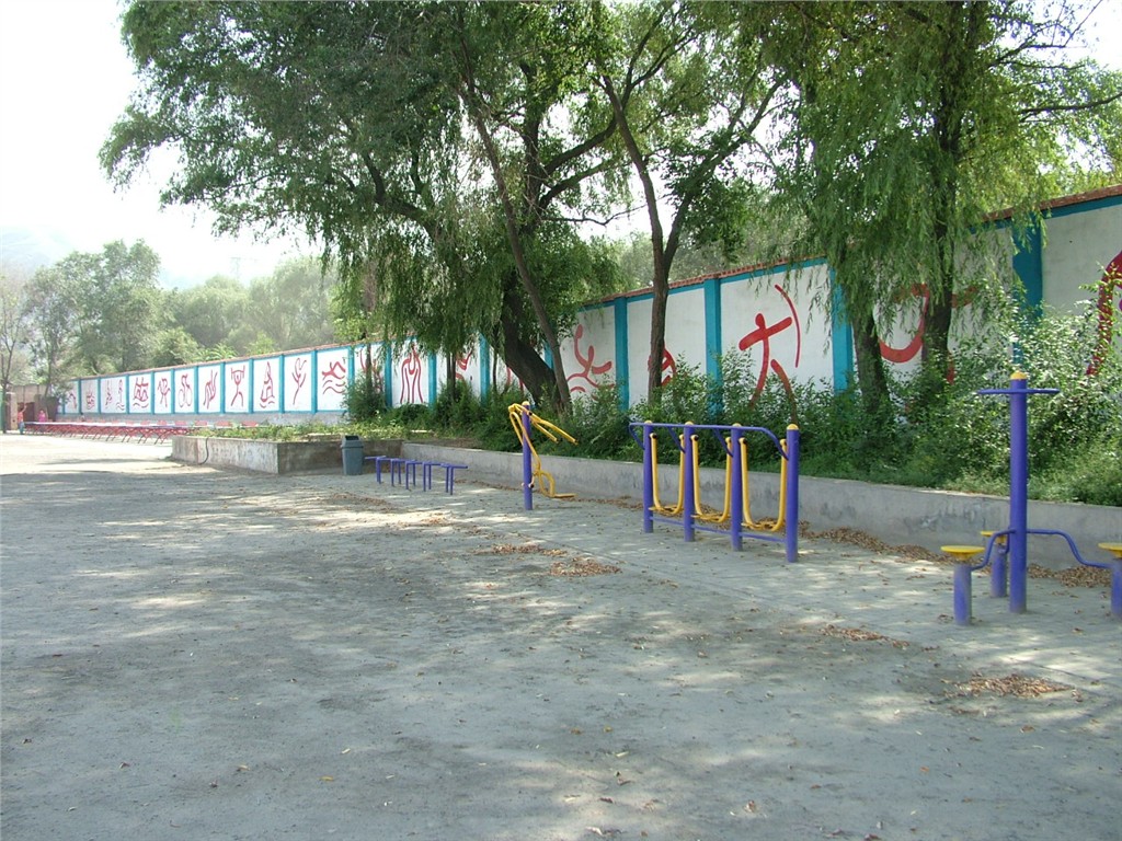 这里是学校的操场,是我们锻炼身体的地方。操场上摆放着各种各样的健身器材。我们每节体育课都会在这里跑步,做操。大课间十,我们会约上一群同学去打篮球,踢足球,打排球,操场上洋溢着我们的欢声笑语。