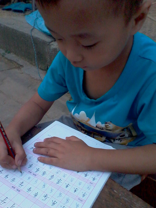 看,他现在正在写字,安静下来的他可以说是有不一样感觉。今年的他才上一年级,写起字来歪歪扭扭也不好看,可他喜欢写字。他总说总有一天他可以把字写好,总是会进步的嘛。这是我安静下来的弟弟,不过可别认为他很乖哦。