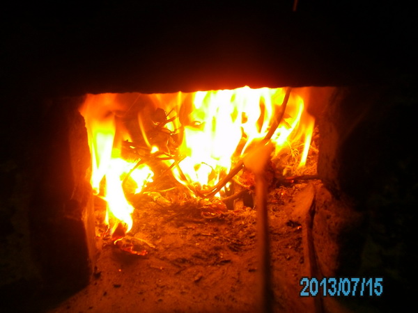 烤玉米说着很简单,但也是有学问的。如果火候没有控制好的话,要么就会全烤焦;要么就会外面烤焦,里面却还是生的。我把火生好后,婆婆就用火钳将玉米夹起放进了火炉里开始烤了。还不能直接放在火上烤,那样温度就太高了。要放在大火旁边的热灰上烤,过一会就用火钳翻一下。