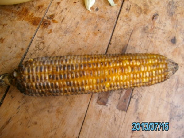 我等了又等,过一会就问问婆婆好了没有,几分钟就像几小时那样漫长。过了大概4、5分钟,玉米终于好了。婆婆用火钳把两个玉米都夹了出来。先把玉米上多余的灰拍掉,再用干净的帕子擦一下就可以吃了。玉米烤好后很烫,所以不能着急,也不可以用水去洗,那样就会失去刚烤出来的香气。