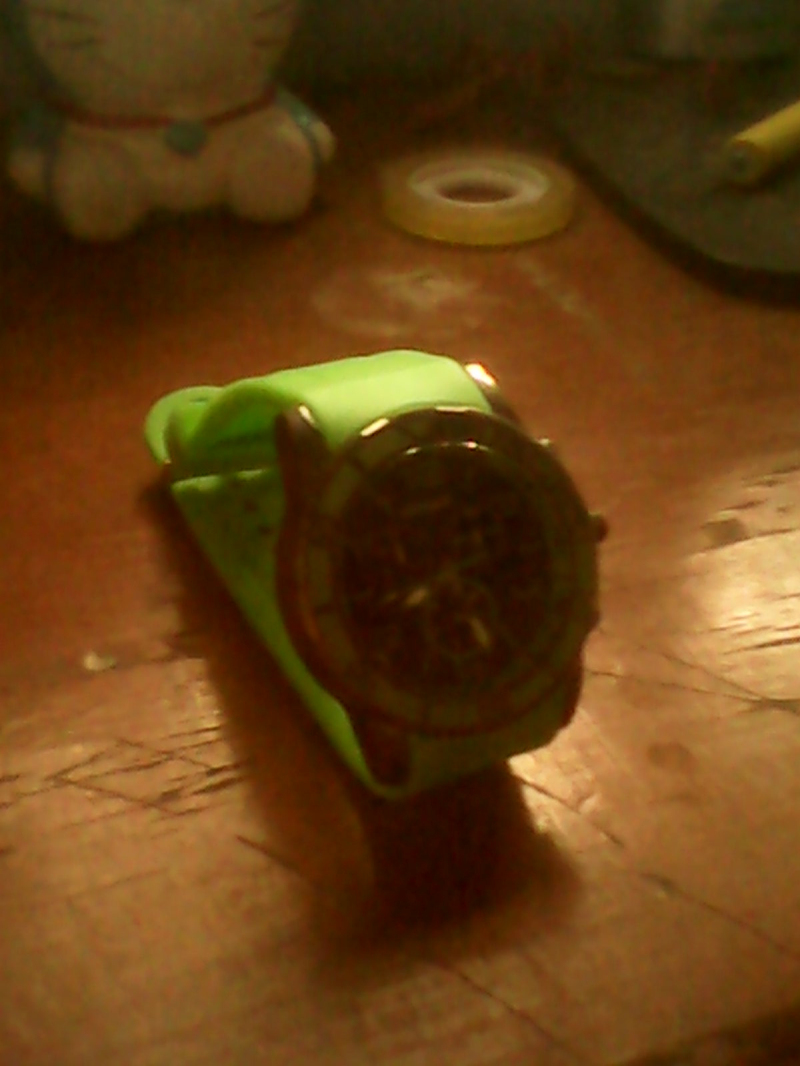 手表,一部深绿色的手表,看起来挺华丽的,其实却挺平凡的,及其普通的手表,帮助我提供时间,看起来不咋的,可实用性很高,只有一个调节时间的按钮,其他两个只是装饰的东西,我也很喜欢它,它也是我过去的生日礼物,妈妈送给我的瞧,他还报着北京时间呢!