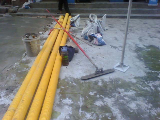 接下来就是挖土机用沙石再次铺满。此后,叔叔们还会放一条条钢筋在上面。为了让我们能早日告别踩着坚硬石尖回家的生活,中午时分工人们仍举着测量仪在路旁小心翼翼的测出水平线,然后用挖土机运来混泥土,那堆成一堆的混泥土得靠工人们用大扯板大致拉平,接着用铲子把多的混泥土填补到少的地方,最后用大抹刀抹平。