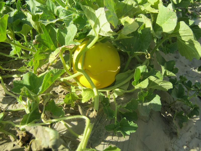 我很好奇,总是问这问那,外婆也就耐着性子给我讲解。蜜瓜的生育期是105—120天,结上小果子后35—40天成熟。蜜瓜的形状似椭圆形,还没有成熟时瓜皮呈绿色,成熟后瓜皮变成了金黄色。