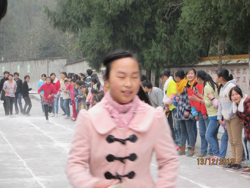 女生们也不甘示弱,接过男生传来的接力棒,拼命地往对边男生处跑去。两边站着了老师和同学,他们都在给同学们呐喊助威,“加油、加油”的口号声一浪高过一浪。一个个跑得更有劲了。