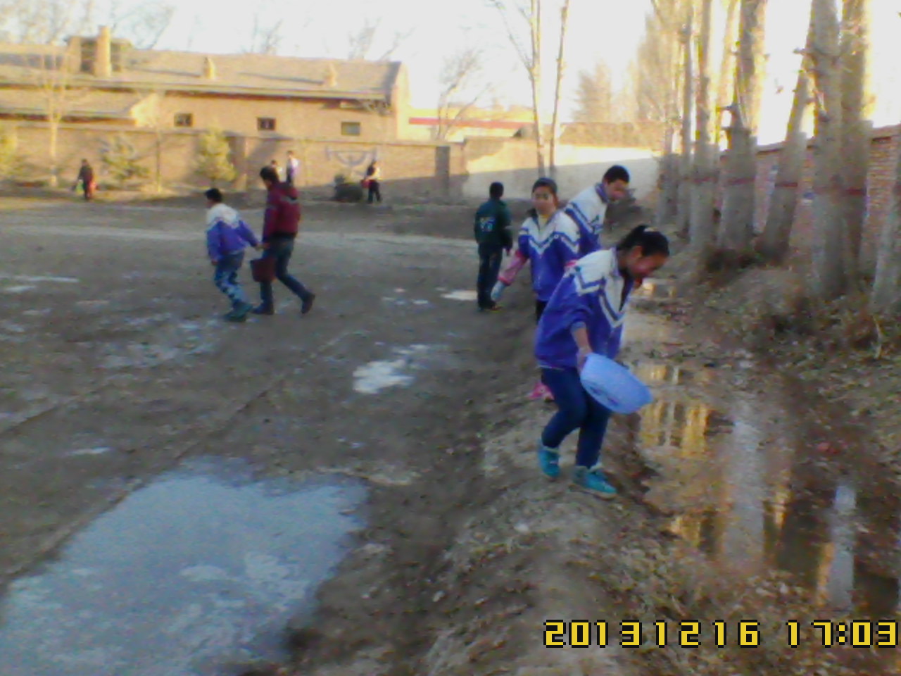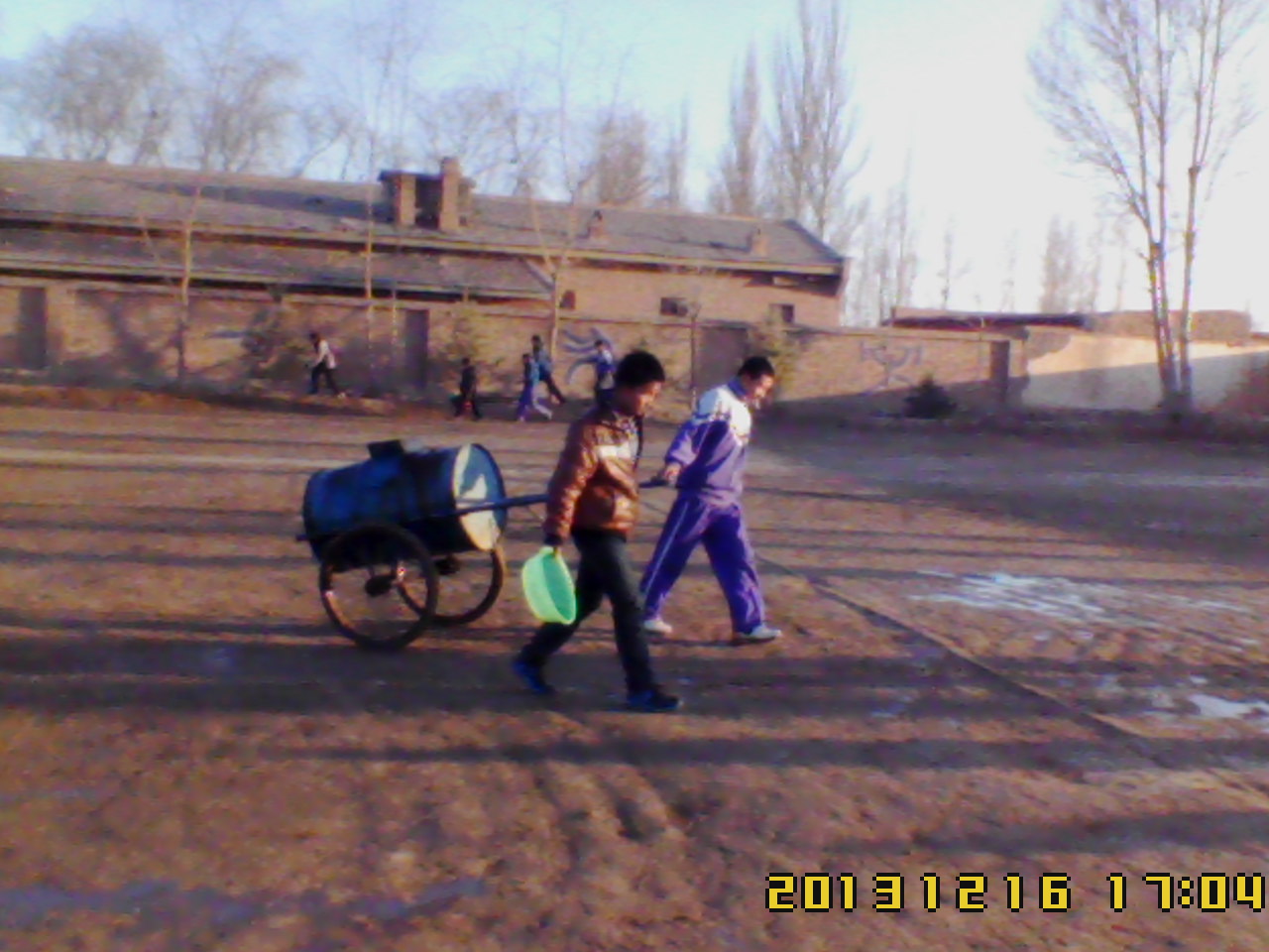 我们的学校条件比较艰苦,还是土操场,再加上我们这里冬季干旱少雪,因此操场十分干燥。我们上操、活动时尘土飞扬,实在不利于健康。今天下午,学校安排我们班洒操场,我们都很高兴。