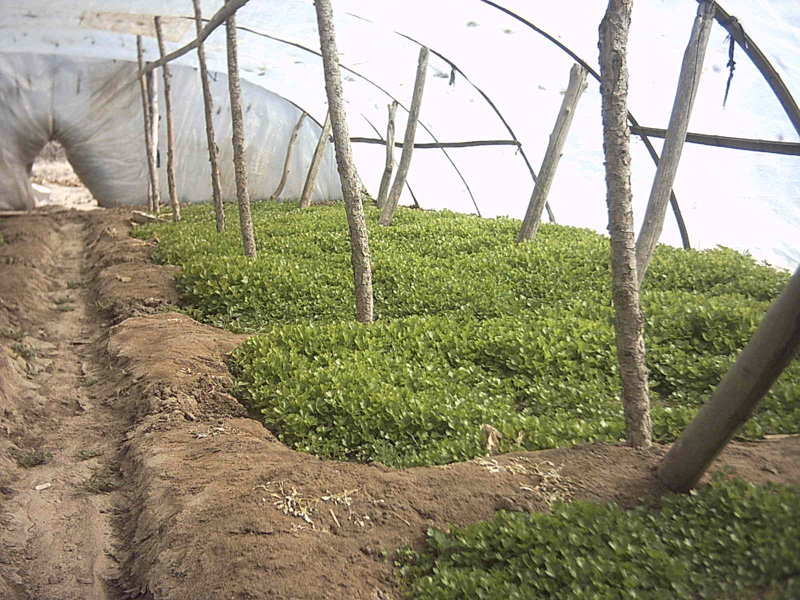 南面的院子里可丰富了,首先映入眼帘的是两个大棚,这两个大棚里育着芹菜苗,芹菜苗嫩绿嫩绿的,非常好看。