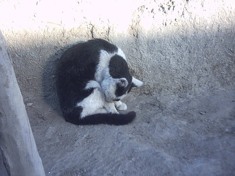 我家这只猫非常懒,整天在家里躺着呼呼大睡,还用爪子抱着头,好像是怕人打扰它。不过它也有活动的时候,每天下午都要到太阳地儿来回滚动,直到身上全是土才肯罢休。