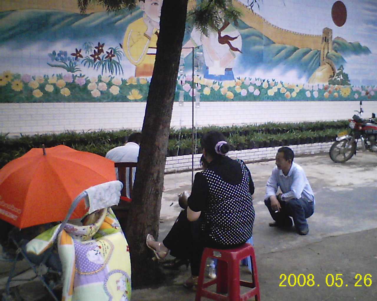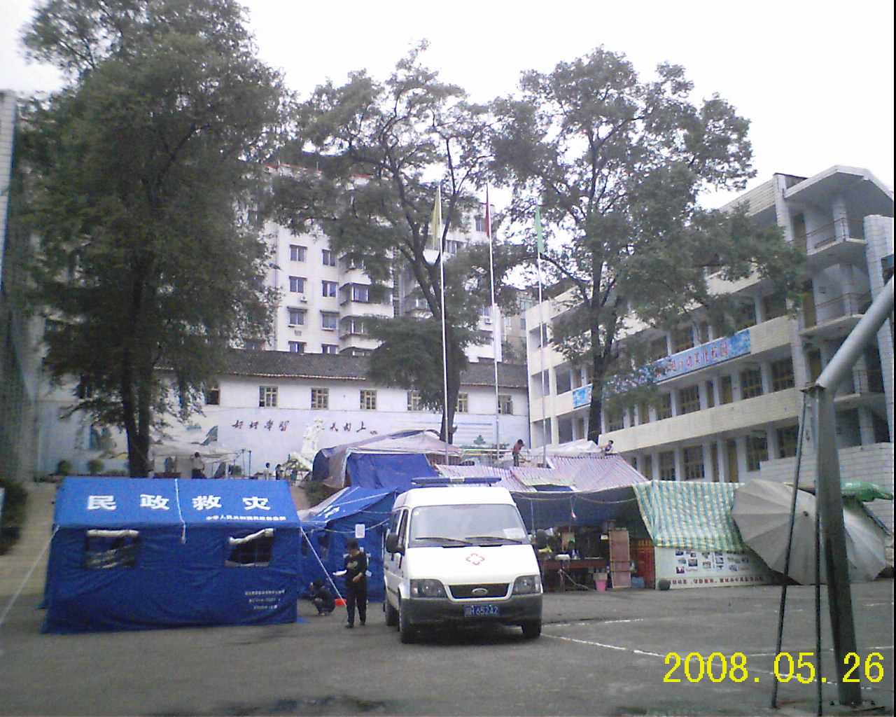 操场上到处搭起帐篷,学校周围的居民为了躲避地震,都到学校搭起临时帐篷。附近妇幼保健院的叔叔阿姨也将医院搬到了操场上,以前觉得宽敞的操场,显的特别拥挤!