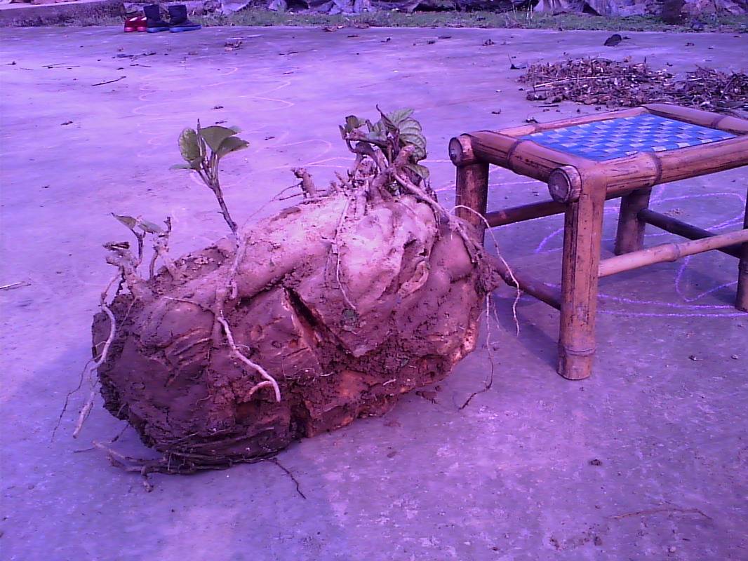 这个红薯王长约30厘米,宽约20厘米,高也有20厘米,我立马搬来一个小椅子,呵!这个红薯竟然和这个椅子一样高大。想去把它拿起来,掂掂有多重,可是我发现,一只手我根本就拿不动。我迫不及待地问二伯:"二伯,这个红薯王有多重呀?"二伯见我这么热心,就叫二婶拿出杆秤,我看着他们费了九牛二虎之力才把红薯王称出来。二伯仔细瞧瞧秤杆上的星点回答说:"差一点就十五斤啦!"天哪!十五斤!十五瓶矿泉水一样的重量,简直不敢想象!