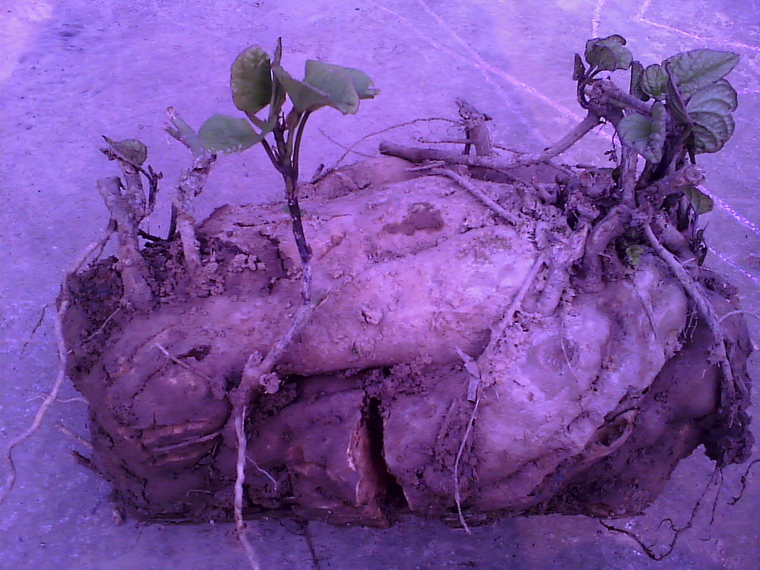 "神了!神了!"我一边赞叹,一边细细地研究。这个红薯王,不断个头巨无霸,头顶上还长着几枝嫩绿的秋藤,膨胀的身躯上有几道斑驳的裂痕。蹲下身子观看,简直就像一座栩栩如生的山石风景雕刻,怪不得我的小侄女都那么喜欢。啊!这个红薯王太神奇了!它身上有许多裂口,仿佛是在宣告着它的饱经风霜的成长经历。它的巨大又仿佛是在宣告着它不同凡响的成功。是啊,不经历风雨,怎么见彩虹;没有拼命地吸收阳光雨露,怎么能结出惊人的硕果?啊!好一个神奇的红薯王!