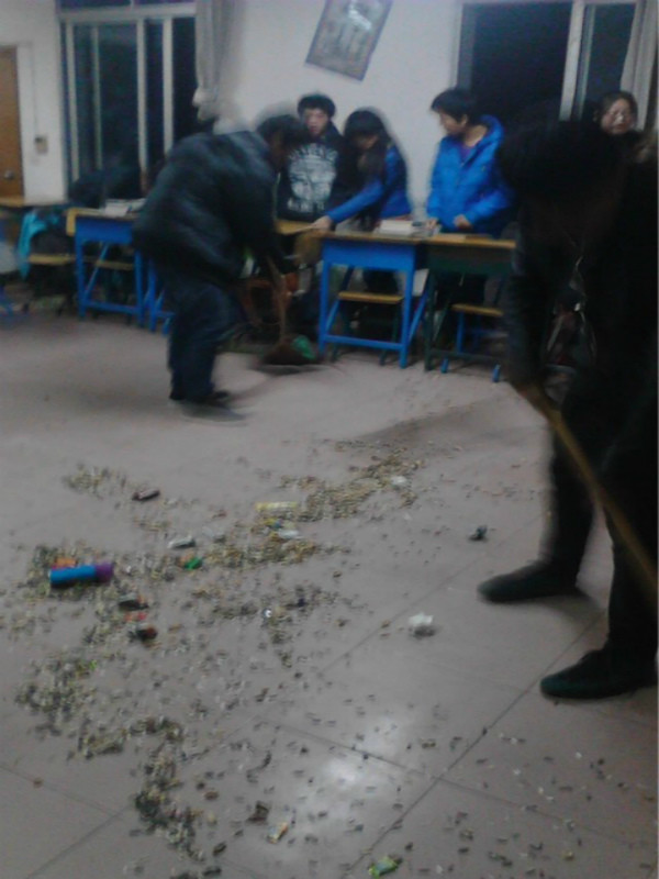 在最后的几分钟,同学都像疯了一样,把瓜子壳全都拿去撒人了,弄得教师中央有很多的垃圾。这对今天晚上扫地的同学来说,不是一个好征兆。不过也不好失落,这个任务不会全是扫地同学们的。看吧!还是同班的人感情好,大家一起行动起来——扫地,每个人笑的是合不拢嘴,看到这种团结的气氛,我感觉,我们每个人都长大了不少。让我们一起欢呼——圣诞快乐!