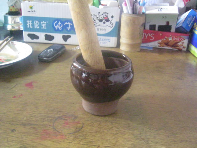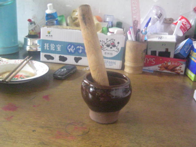 说干就干,我跑进厨房拿来大蒜、蒜碗、捣蒜棒和盐。首先,我将蒜皮剥了。然后,将剥好的蒜放进蒜碗里,再往里面放了些盐。最后,拿着捣蒜棒使劲往碗里一下一下地砸。看似简单实则不好砸。
