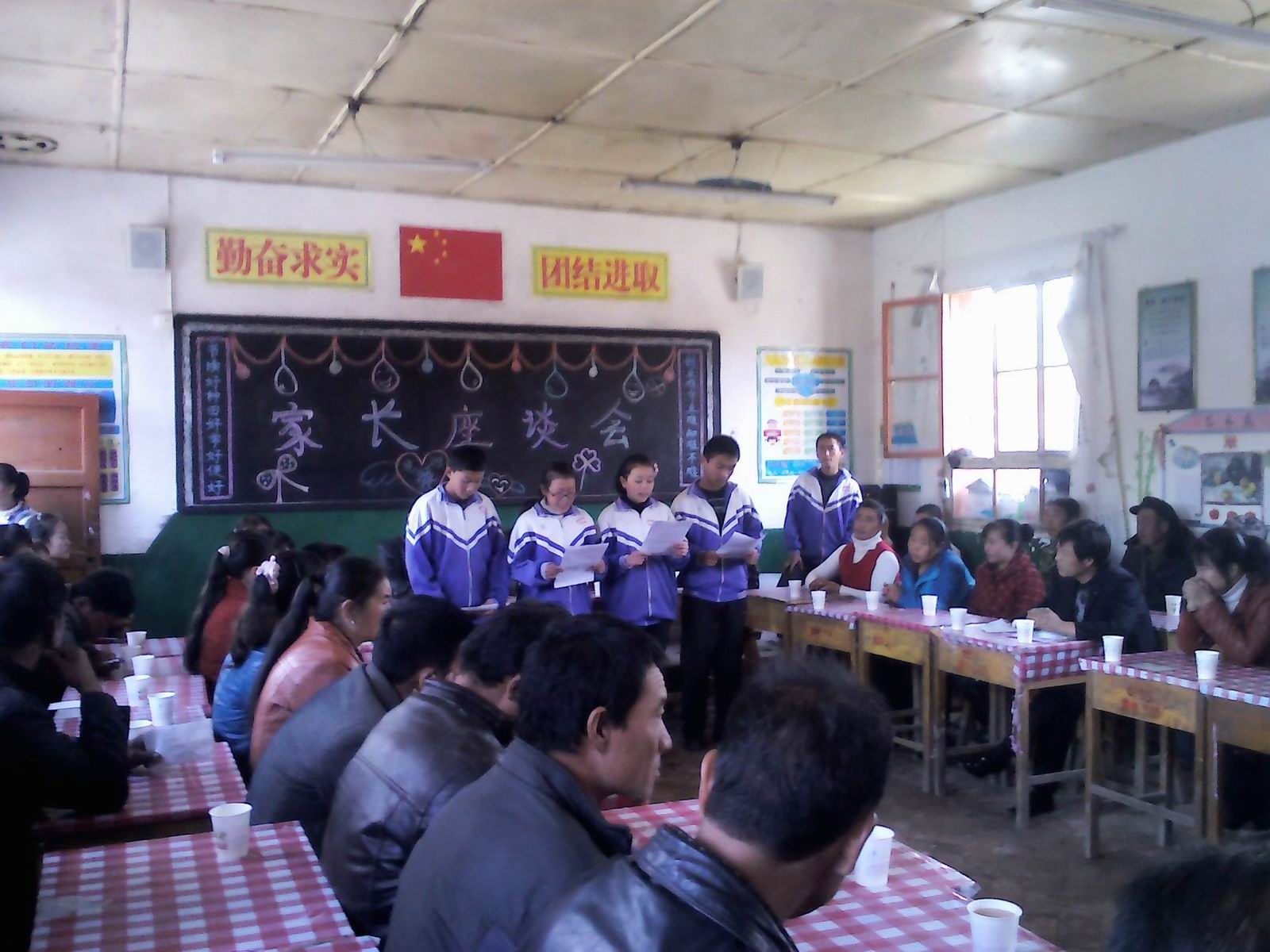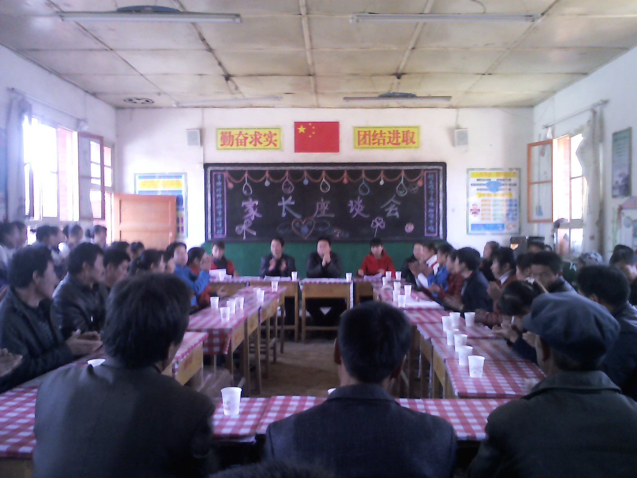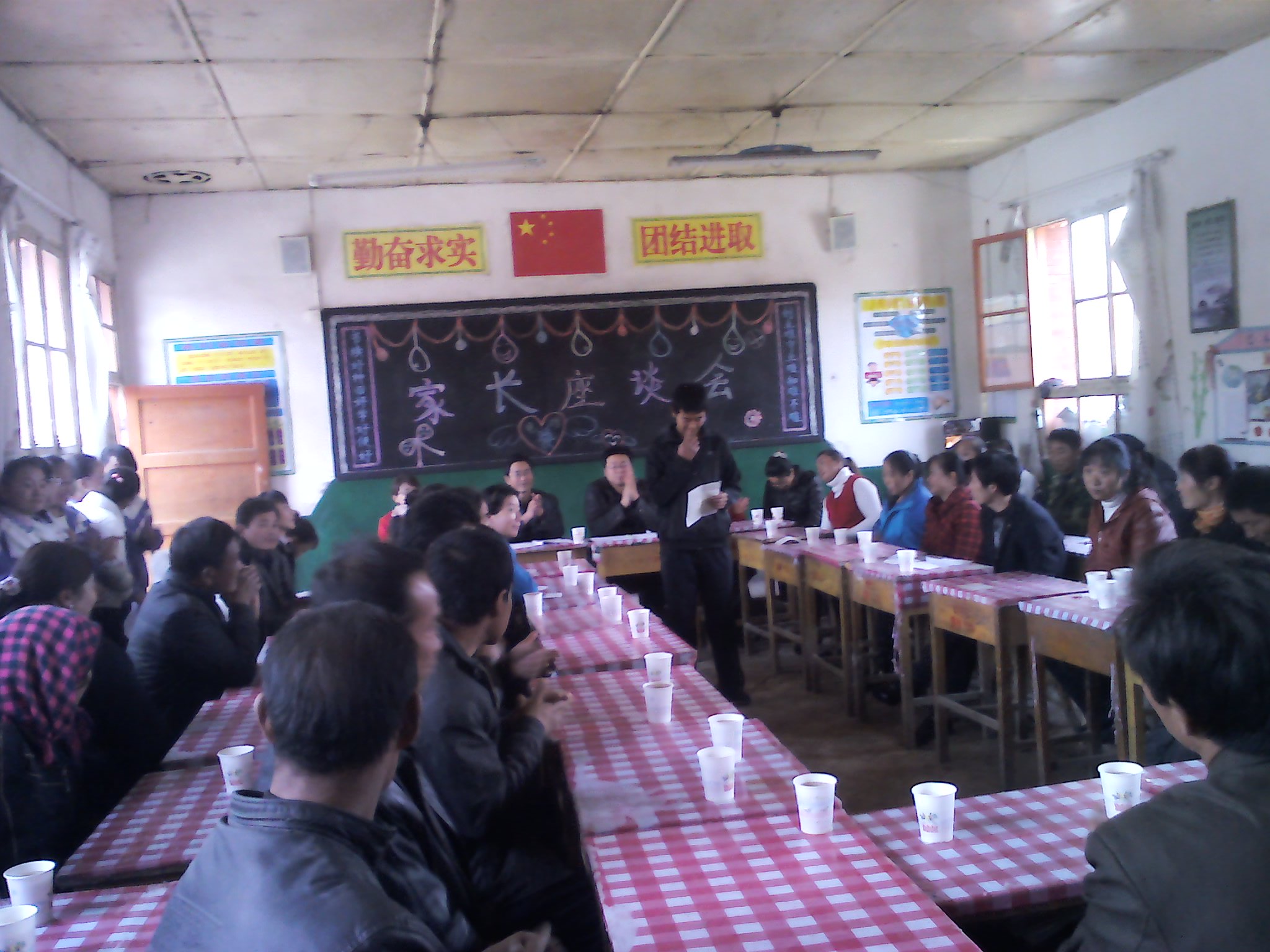 最后是我们班进步最大的香军旺同学,进行他这半学期的学习汇报。他说他的进步离不开班主任老师的谆谆教导,也离不开同学们的热心帮助,更离不开父母的大力支持。说到动情处香军旺声泪俱下,也感动了我们大家。 本次家长会没有往日的说教,而是学习经验交流,家长对学校工作的意见。在欢乐祥和的气氛中圆满结束了,真是一次别开生面的家长会。