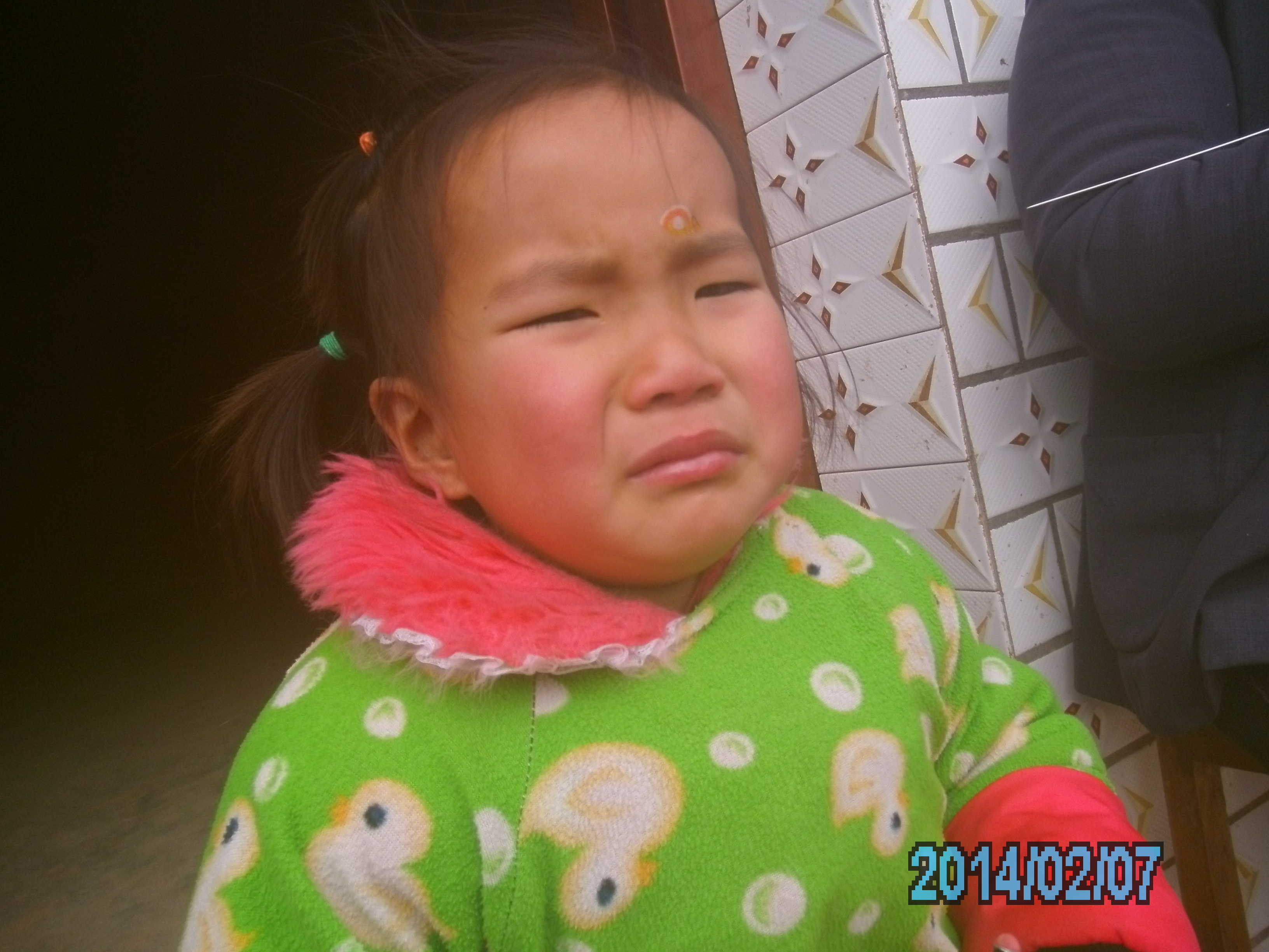 雨雨有时还很"烦",在我睡觉或看电视的时候总是要弄我的头发。因为床比较高,她自己一个人上不去,总吵着要让我把她抱上去。抱上去以后,如果我一下去,她又要嚷着让我把她一起抱下来。我不肯,她就开始哭。还是实力派,哭两声眼泪就唰唰往下掉,给她一颗糖就又可以笑起来。