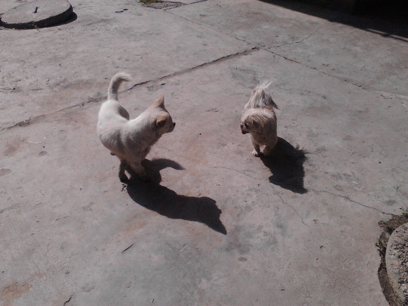 铁妞与牛崽是我们邻居家的两只狗狗,两只狗狗都是白色的,常常在一起玩耍。它们的关系非常的友好,我从没有发现过它们打架、吵架之类的事,它们俩始终在一起,互相陪伴着,同进同出,俨然是一对十分恩爱的夫妻。