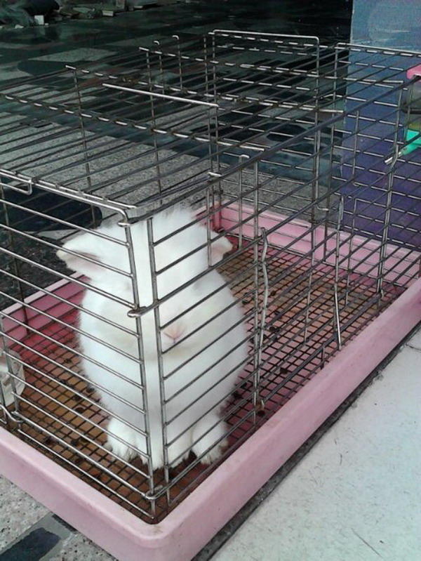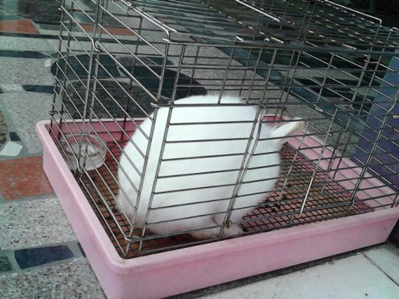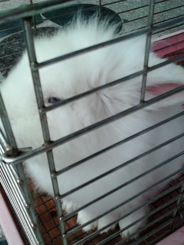 小白兔最喜欢吃萝卜、青菜了,它只要一看到食物就会连蹦带跳的跑过来,津津有味地吃起来。它吃饱了就会跑到角落里睡起觉来。它在角落里缩成一团就像一个雪球。