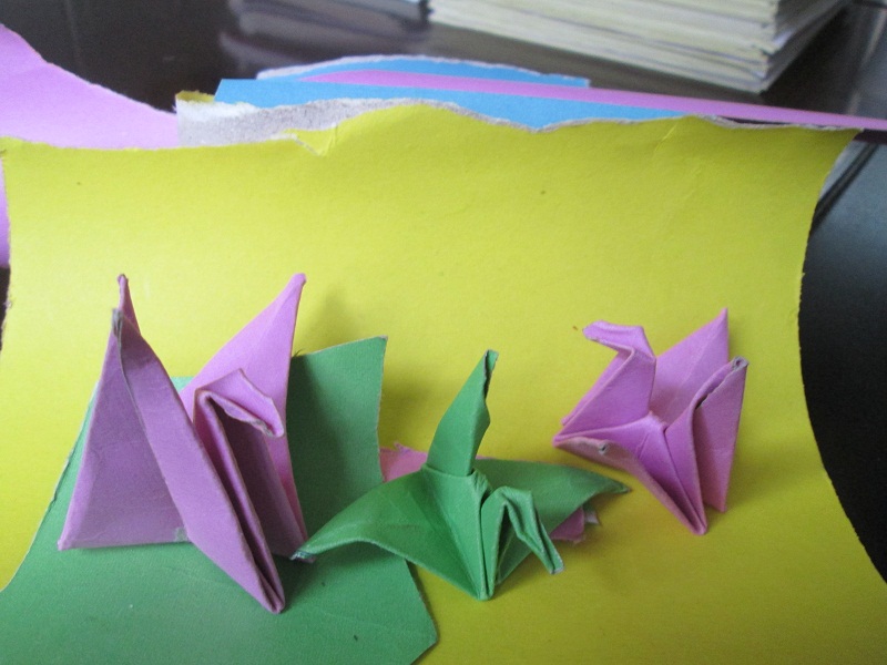 "千纸鹤"一说起千纸鹤这个名字,同学们就会争先恐后的说:"我会叠!我会叠!还会示范给别人看。我就非常喜欢千纸鹤。因为有人说,用一千张纸,叠一千个纸鹤,就可以对它们许三个愿望,它们会帮你实现愿望的。