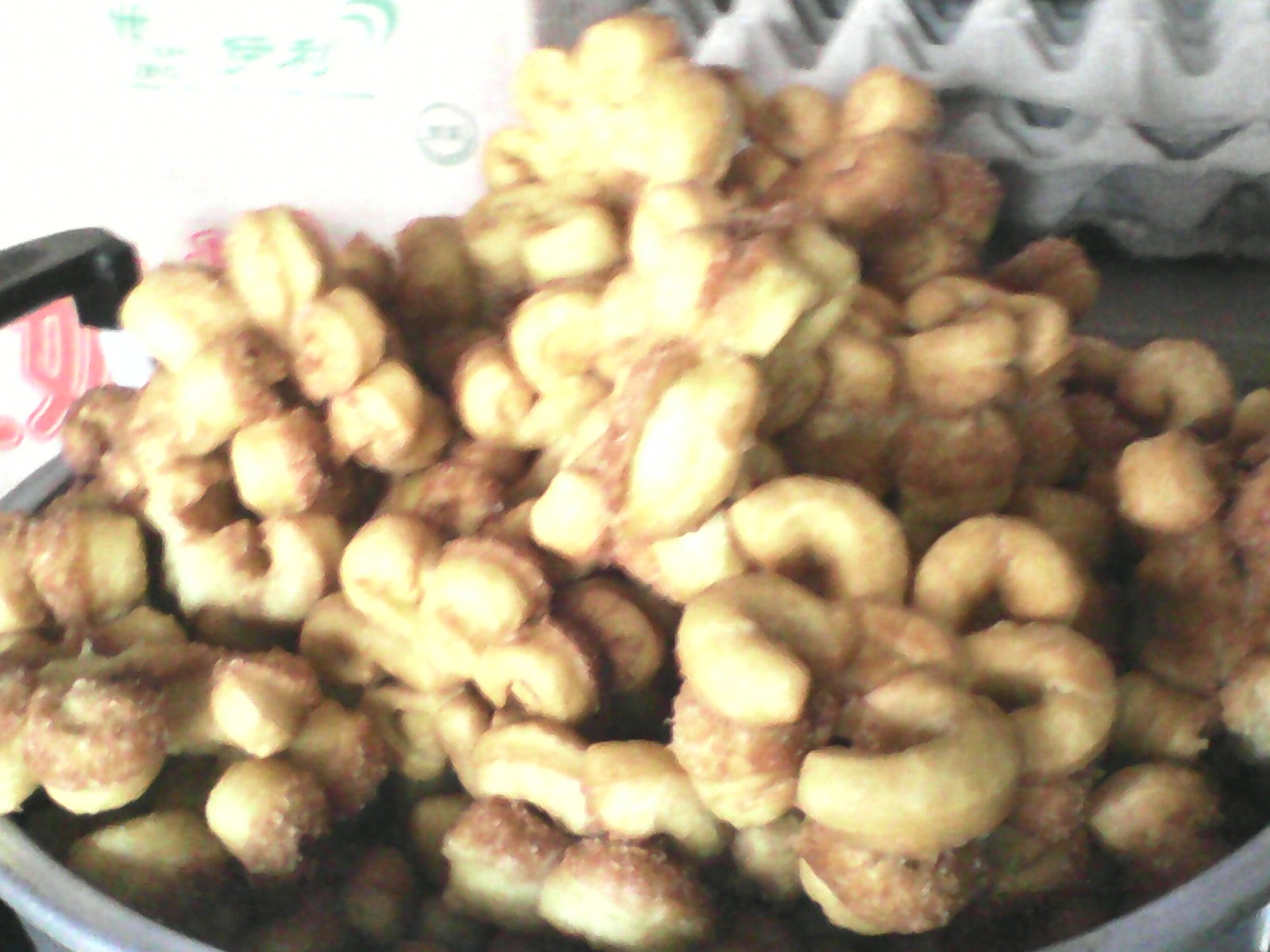 半个多小时后,终于开始搓麻花了。将发酵了的面剂搓成长条状,上了劲,将两头并在一起提起,两根面条就紧紧相抱在一起,再二次上劲,再提起……将面头粘好。这样,麻花就成形了。再放入油锅中炸上一炸,麻花就完工了。