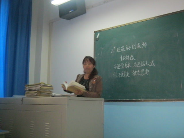 开学第一天,她站在教室门口,亲切地迎接着每一位新同学,并关爱地抚摸着我们的头,或是我们笑一笑,本来十分胆怯的我,这时对老师不那么紧张了。